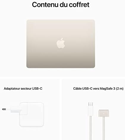 Apple 2022 MacBook Air avec Puce M2 : écran Liquid Retina de 13,6 Pouces, 8GB de RAM, 256 Go de Stockage SSD ; Lumière stellaire