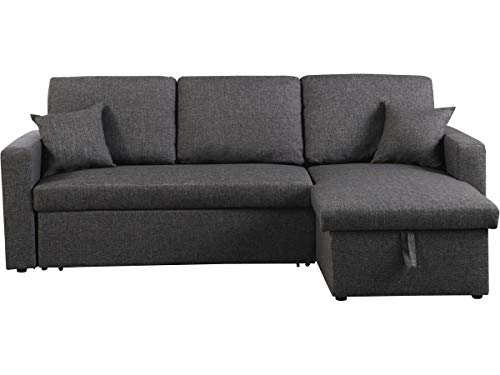 • Canapé d’angle convertible « Alain » – 3 places – Gris – Lin – Canapé: 221 x 145 x 85 cm – Couchage: 192 x 137 x 43.5 cm – Espace de stockage (méridienne)