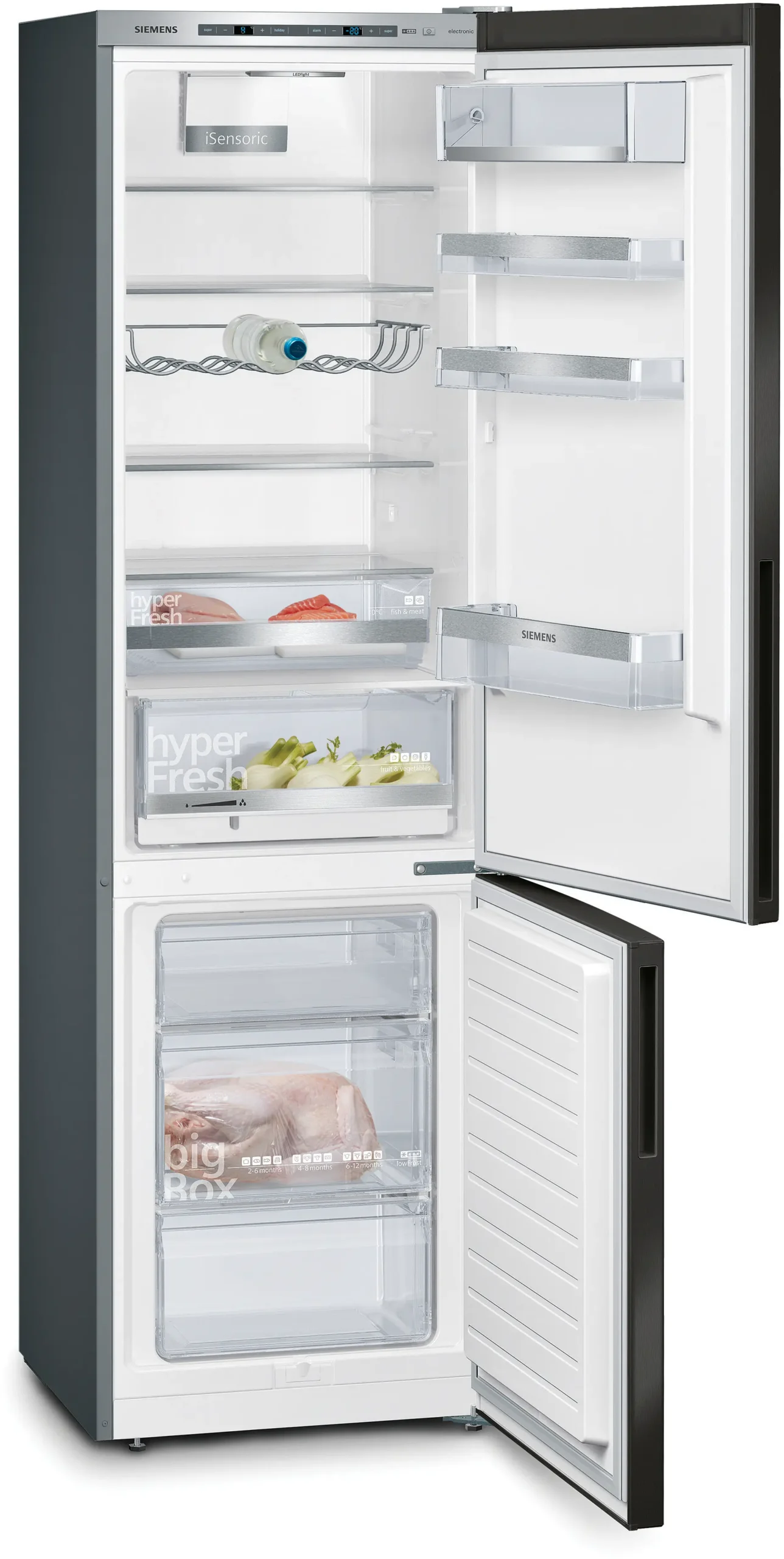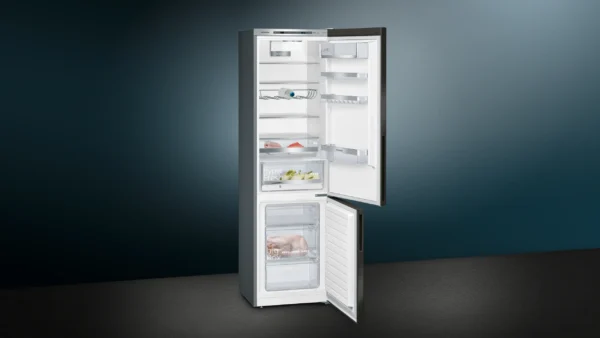 iQ500 Réfrigérateur combiné pose-libre 201 x 60 cm Acier brossé noir anti-traces