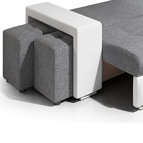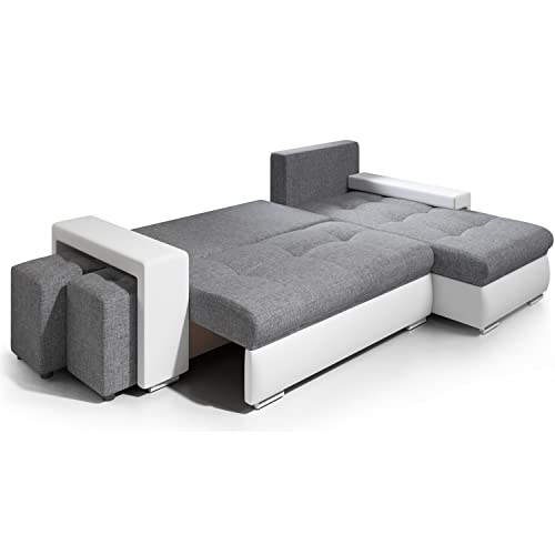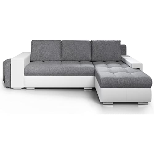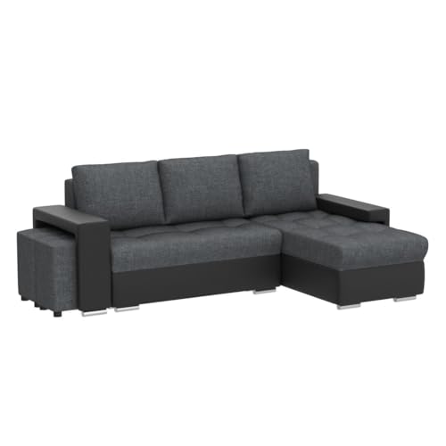 - Canapé moderne convertible avec coffre de rangement – Angle réversible (droite/gauche) – Coloris simili noir (PU) / tissu gris (100% polyester)