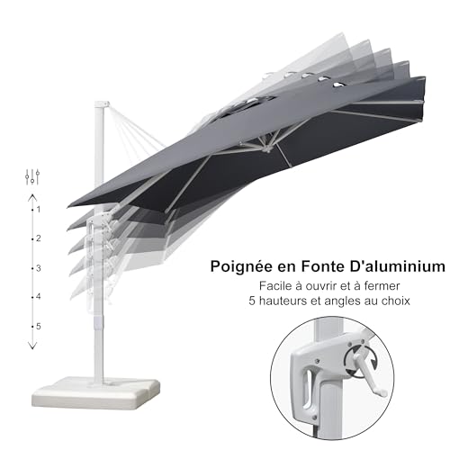 La conception à manivelle permet d’ouvrir et de fermer le parasol facilement, rendant son utilisation très pratique