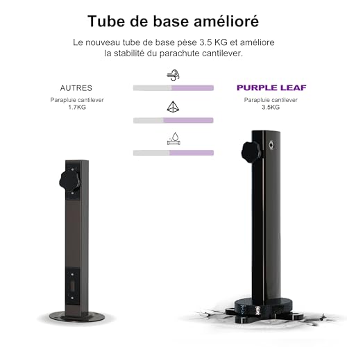 Le parapluie déporté PURPLE LEAF est ventilé et a un bon effet de protection solaire, vous offrant un espace ombragé frais et confortable. Répondre à vos nombreux besoins, tels que les repas en plein air, les fêtes, les pique-niques et autres activité