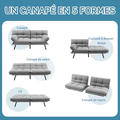 RELAX4LIFE Canapé-lit Convertible 5-en-1 avec Dossier Réglables à 3 Niveaux | Accoudoirs Réglables à 4 Niveaux| Pieds en Métal, Canapé-Lit Moderne à Dossier Divisé en Mousse à…