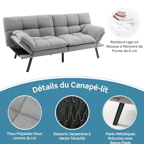 ★RESTEZ DANS LE CONFORT★Recouvert de tissu polyester doux semblable à du lin, le canapé futon est très doux pour la peau et respirant. Le dossier et l’assise rembourrés sont remplis de mousse à mémoire de forme de 6,5 cm d’épaisseur, qui assurent un confort exceptionnel. Le plaisir du luxe vous attend, ici même !