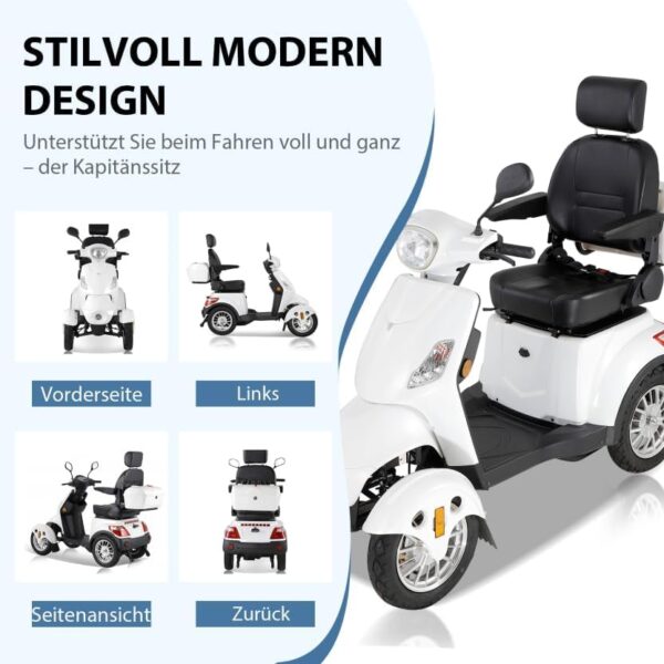 • Le scooter mobile à 4 roues motrices pèse 225 kg et offre aussi bien aux adultes qu’aux adultes que aux adultes le plus haut niveau de confort, de confort et de liberté de mouvement.