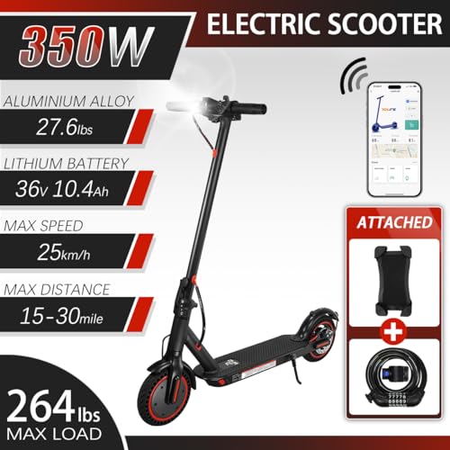 Batterie 36V/10.4AH, Frein E-ABS + Frein à Disque, Affichage LED et Application, Support et cadenas pour téléphone portable gratuits, Moteur sans balai 350W